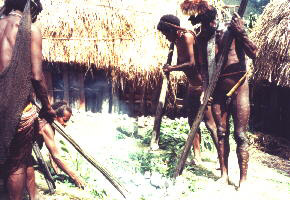ニューギニアで今も行われている蒸焼き料理の写真です.(中身はブタ肉とイモです)縄文時代もたぶんこんな感じだったのでしょう.