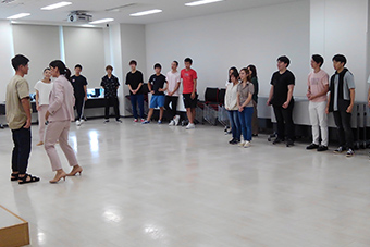経営学部1年生対象の特別研修が2019年9月17日(火)に行われました。講師(トレーナー)は「音楽座ミュージカル」の俳優のみなさんで、学生は舞台芸術の感覚的なトレーニングを通して、本研修のテーマである「Feel-感じる-」について考え、コミュニケーションの本質を学びました。