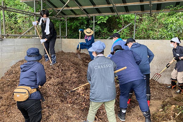 [農場実習]堆肥づくり 落葉や刈り払われた下草などの有機物は貴重な資源です。環境農学科では、これらの有機物資源を効果的に活用すべく、授業で堆肥づくりを学びます。持続可能な農業を実現するためには、身近に存在する有機物の利活用を考えることが重要です。 学びの特徴 国内実習 海外留学 研究・専門分野紹介 Student voices 環境農学科ニュース