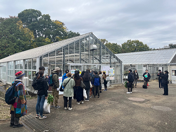 野菜の販売が行われた学内農場には多くの来場者が訪れ、高校生たちの栽培した野菜は全て売り切れ。