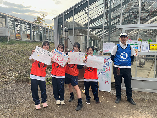 商業を学ぶ高校の有志高校生が参加する「ミライ起業塾」が農学部で開講されています。こちらは観光学部の家長千恵子先生の企画で、高校生達が商業高校での学びを活かし、農産物の生産から販売までのビジネスを体験します。