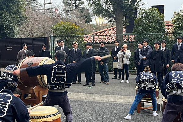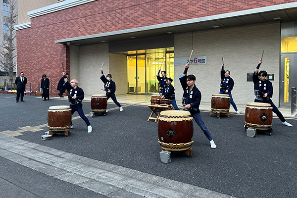 学位記授与式の後6号館前では農場太鼓の演奏が行われました。
