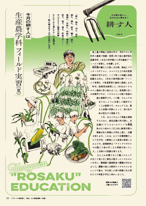生産農学科の実習科目が玉川の教育広報誌「全人」に掲載されました 玉川大学農学部では全学科に学内農場を活用した実習科目を設置しています。このうち生産農学科の科目、フィールド実習の内容が玉川の教育広報誌「全人」2026年2月号、「耕す人」のコーナーで紹介されました。 ぜひ記事をご一読ください。 ※画像をクリックするとpdfが表示されます。