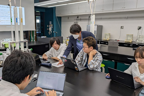 生産農学科では、2年生の秋学期に生物化学実験を履修します。これまでに履修した講義や実験(基礎生物学実験・基礎化学実験)で得た知識や技術をもとに、より高度な実験実習を学びます。例えば、農作物生産に欠かせない農薬の機能と効果の評価方法、果実の成分分析、タンパク質の分離、核酸の抽出など、卒業研究に必要な実験手法を修得します。初回は、実験実習の基礎となるレポートの作成方法を再確認しました。また、生成AIはレポート作成に活用できる一方、使い方を間違えると重大な研究不正にもつながります。そのことにも留意して、これから始まる実験実習のレポート作成に取り組みましょう。
