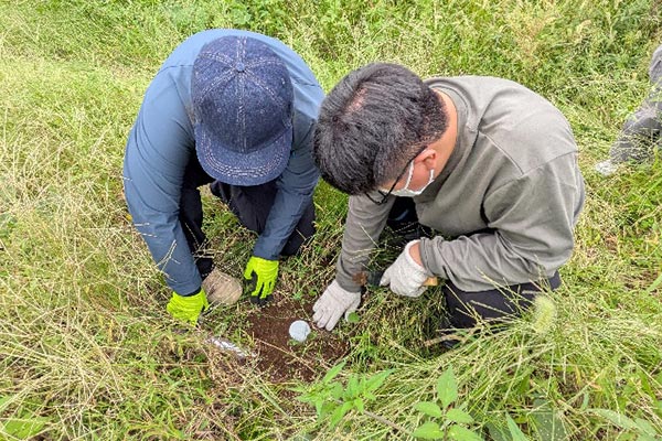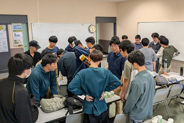 3年生秋学期に履修する専門実験・実習Bでは、各専門領域(植物科学・微生物科学・動物科学・昆虫科学)における基礎的な実験技術の原理を学び、その技術を体験・修得します。今回は、昆虫科学領域で行われた実験・実習の様子です。アリの種同定や形態観察などを通して、昆虫の知識や技術を修得するために、学生自らアリを採集しました。まず、各班に分かれ、焼酎と唐辛子をベースにハチミツなどを加えたオリジナルレシピの誘引液を作製しました。その液を入れたプラカップをキャンパス内の様々な地点に埋設し、翌日に回収しました。皆さん、アリの生態や行動を想像しながら、楽しそうに準備・設置をしていました。この後は、いよいよ回収したアリの同定と形態観察です。どこのトラップにどのような種のアリが捕れているか楽しみですね。