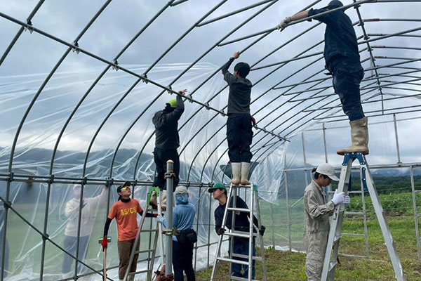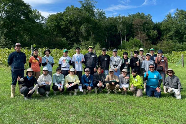 8月中旬、北海道弟子屈農場にて3年次の選択科目であるフィールド実習を行いました。今年は生産農学科と先端食農学科の合同での実習となります。実習では演習林の観察、肉用牛のお世話、ワイン用ブドウの管理、大規模牧場の見学、ハウスのビニール張り、雑木の伐採を行いました。また、農場のある弟子屈町周辺の自然を観察する硫黄山散策も行いました。北海道の自然を満喫しながら様々なことを学ぶこともでき、実習後、学生からは「楽しかった」、「また来たい」など嬉しい言葉も聞けました。学びの多い充実した6泊7日を過ごすことが出来ました。