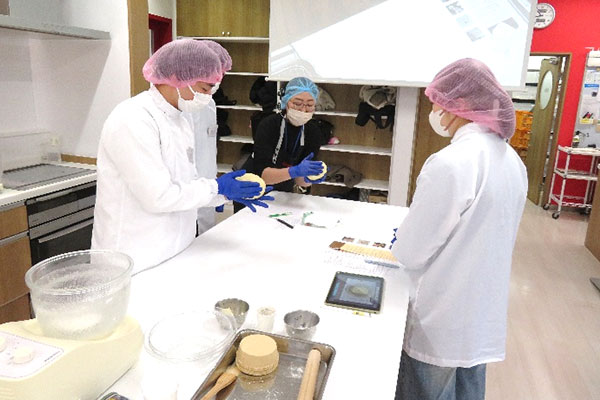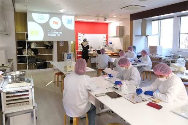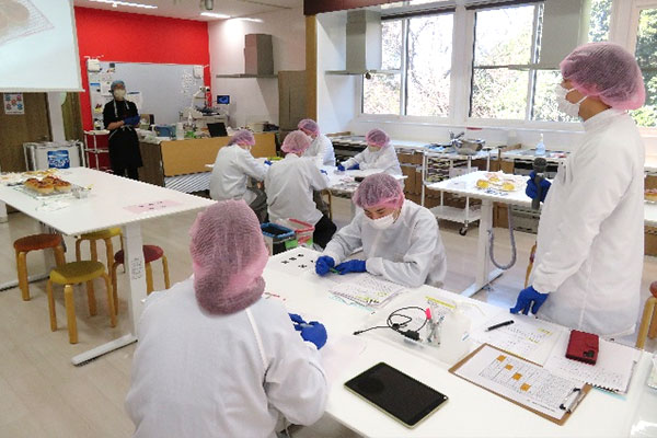 食品加工実習(集中)の後半が2月上旬に開講されました(前半の様子はこちら)。2月6日には外部講師として「日本ニーダー株式会社」様に講義・実習をしていただきました。日本ニーダー株式会社は、パン作りを簡単に、そして楽しさを伝えるための機器類を研究・開発している企業です。