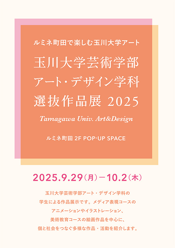 9/30(火)より、ルミネ町田2F POP-UP SAPCEにて、玉川大学芸術学部アート・デザイン学科の個人作品、産学連携作品を展示しています。