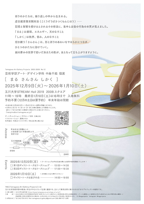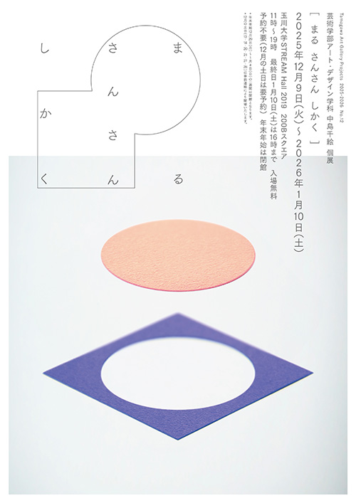 Tamagawa Art Gallery Projectsでは、2025年12月9日(火)より、玉川大学芸術学部アート・デザイン学科 教授 中島千絵による個展『まる さんさん しかく』を開催いたします。