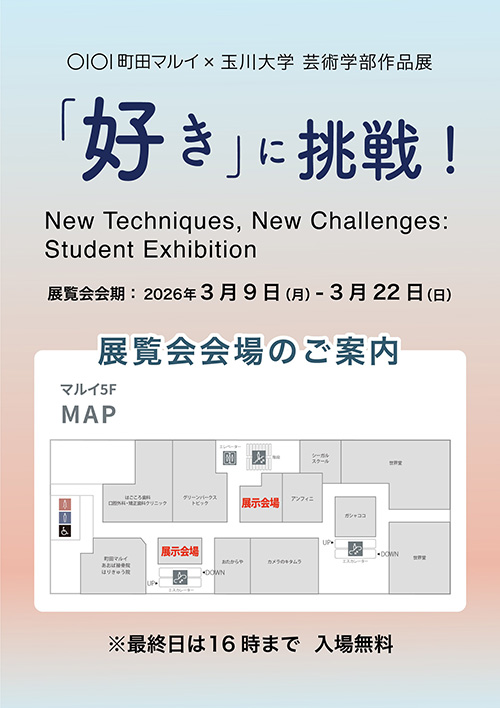 本展覧会は、町田マルイと玉川大学芸術学部がコラボして開催する、玉川大学芸術学部アート・デザイン学科の学生作品展です。