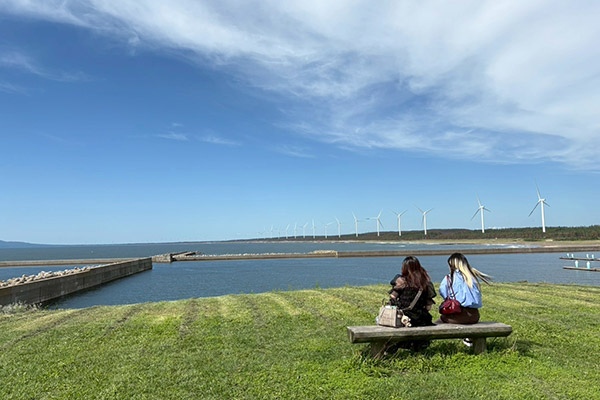 学生たちは秋田経済研究所を訪れ、地域経済の最新動向や人口減少に対する企業の取り組みを学びました。さらに、秋田港の洋上風力発電施設では、再生可能エネルギーの最前線を見学し、地域産業の未来を考察しました。