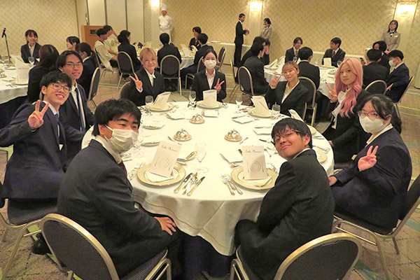 最初は少し緊張気味だった学生たちも、スタッフの方の丁寧な説明のおかげで次第にリラックスし、最後には笑顔でコース料理を楽しんでいました。