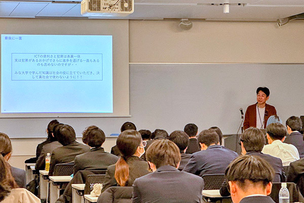 2026年1月24日にThermal Control Technology Co., Ltd の本間嗣務様にお越しいただき、ソフトウェアサイエンス学科の1年生向けに「あなたのまわりの人工知能(Artificial Intelligence)」および「情報化裏社会 ICTを利用した犯罪の闇」と題した特別講義を行っていただきました。