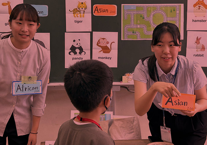 英語教育学科では、英語による授業が可能な英語力に加え、英語教育に関する理論と実践力を併せ持った英語教員の養成が大きな目標の一つになっています。そこで、理論を実践に生かす機会をカリキュラムの中に積極的に取り入れています。また、異なる国や文化の中で教育への理解を深める留学プログラムなども用意し、国際感覚と指導力を兼ね備えた英語教員を養成しています。