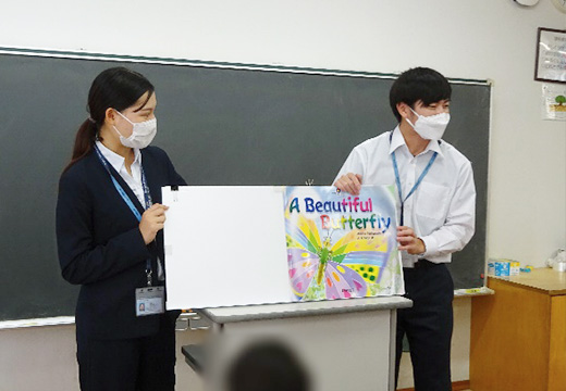 2時間目と3時間目は、授業実践をする学生、その授業を支援する学生、見学する学生の3班に分かれました。他学生の授業では、参考にしたい点と注意したい点がありました。活動は全員の児童の準備ができていることを確認してから始めるという点、ジェスチャーを効果的に用いて一斉の発話のタイミングを揃えるという点などは参考にしたいと思いました。一方で、声の大きさやモデルとなる発音、一人ひとりの児童を見ることとクラス全体を見渡すことのバランスなどは、自分が授業をするときには注意すべき点が見つかりました。