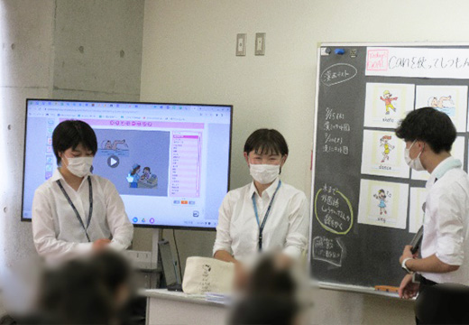 1日目の実践を通して良かった点と改善点に気付きました。良かった点は、児童とのやり取りを大切にできた点や視覚教材が充実していた点です。リハーサルや模擬授業を通して、改善しながら準備を進めたことが鍵となりました。一方で改善点は、外国語の授業なのに日本語が多くなってしまった点、授業と活動とのメリハリがなかった点、時間配分が上手くいかず最後のまとめがしっかりできなかった点です。
