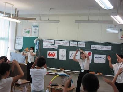 4学年では、タイムマネジメントがうまくいき、時間通りに授業を終えることができた、よかった点として、授業を楽しむ児童の姿が見られた、活動を通して本時のねらいである魚の名前が児童から聞こえてきたことが挙げられた。一方で、授業の終わりが曖昧で締まりがなくなってしまったとの反省があった。また、英語で説明したときに、児童の様子から日本語を使うことが多くなり、授業が後半になるにつれて日本語の割合が高まってしまったことも挙げられた。