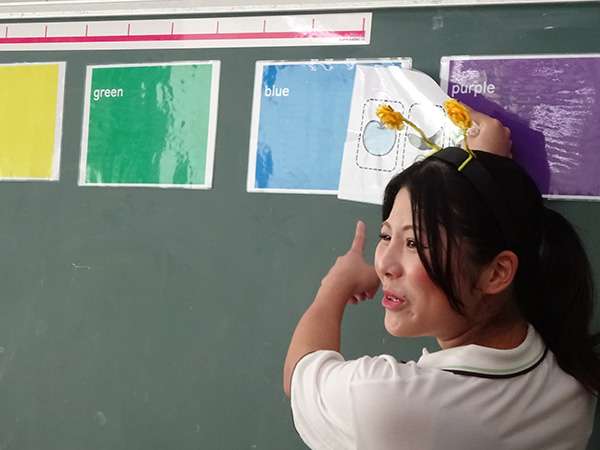 準備期間では主に外国語活動、外国語科の授業概要を学習したうえで教材研究を行った。授業の流れを考えるなかで授業のゴールを明確に定めることを意識し、効果的に定着を図ることができる活動を考えた。また、教材は大きさや色の配合、素材を研究しながら時間をかけて作成した。