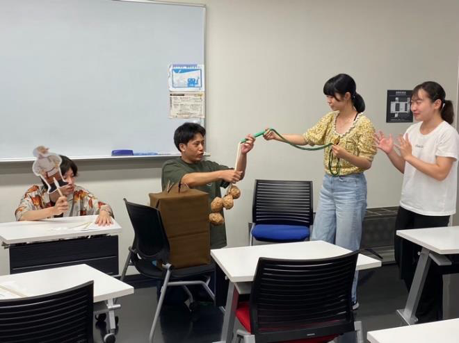 この地域創生プロジェクトB では静岡県下田市との連携のもと、小学生の英語の授業を学生が主体的に企画立案し、実施するプロジェクトである。5月の「地域創生プロジェクトA」に引き続き下田市教育委員会と協力しながら、活動内容の企画準備を重ね、2023年8月30 日・31 日の2日間、下田市の2つの小学校にて実習を行うこととなった。具体的な活動では、以下の3点である。