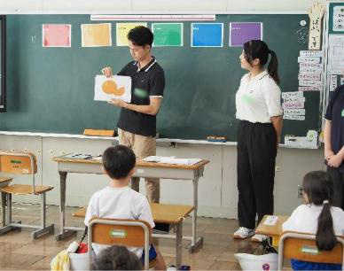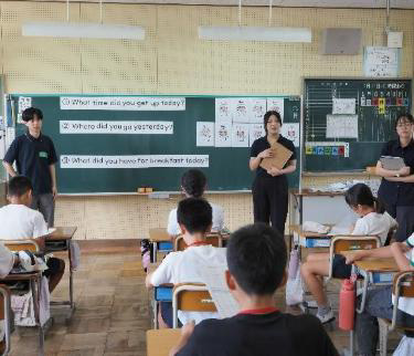 この地域創生プロジェクトBでは、小学生での英語の授業を玉川大学の学生が主体的に企画立案し、静岡県下田市との連携のもと、下田市立白浜小学校と下田市立浜崎小学校の2校で英語活動支援を行った。9月11日に訪問した下田市立白浜小学校では、1,2年生の英語授業1時間分、そして3~6年生の英語授業2時間分を実施し、各学生は2つの学年の授業を担当した。9月12日に訪問した下田市立浜崎中学校では、3~6年生の英語授業2時間分を実施した。本プロジェクトでは、2024年度地域創生プロジェクトAに参加した経験者数名と、今回が初参加のメンバーで協力して指導案作成や教材づくりに取り組み、時間をかけて何度も練習を行った。