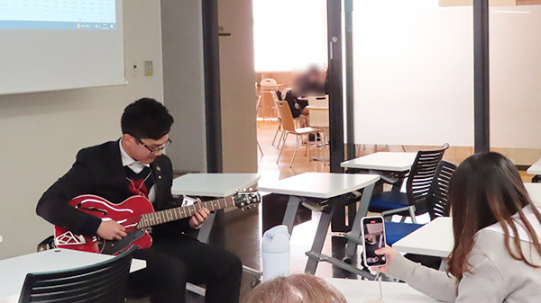 2026/1/19に、リベラルアーツ学部の加茂フミヨシ講師(STEAMフィールド/ポピュラー音楽研究)の授業にブラジルの松柏・大志万学院から4名、オーストラリアのInternational Grammar Schoolから2名、台湾の稲江高校から1名の高校2年・3年生の生徒が交流授業としてご参加いただきました。
