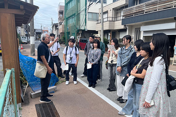 今年度はかまぼこ通りエリアの観光まちづくりをテーマに研究を行っています。10月10日には小田原市中心市街地エリアの現地踏査を行い、観光ガイドの案内のもと、小田原城下の散策、かまぼこ通りエリアのまち歩き観光を体験しました。また、小田原市商業振興課、小田原市観光協会(DMO)の担当者から、同市の商店街振興をはじめ、観光動向、観光振興の取り組みなどについて聞き取り調査を行いました。
