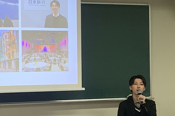 実社会で活躍中の卒業生3名による座談会も開催し、観光学部で学んだことをはじめ、就職活動のアドバイスや、それぞれの勤務先(航空、旅行、ホテル)でのキャリア形成についてお話し頂きました。