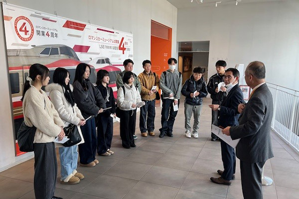 学生たちはまず、同社が運営するロマンスカーミュージアムの活性化に向けた事業提案を目的に、同ミュージアムの視察を行いました。その後、同社の会議室に会場を移し、聞き取り調査を行いました。