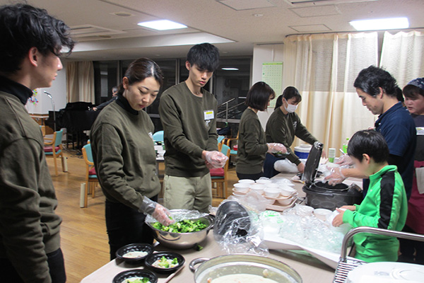 子どもたちがクリスマス工作で遊んでいる間に、ゼミの4年生がボランティアや職員の皆様と一緒にクリスマスディナーの配膳をしてくれていました。