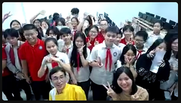教育学部の朝日ゼミと大谷ゼミは、ベトナムのハノイにあるチューヴァンアン中学校の生徒達と2023年5月11日にオンライン交流をしました。チューヴァンアン中学校は、ハノイ市でトップクラスの公立中学校で、ベトナムで最初に日本語授業を取り入れて20年になる先進的な学校です。今回は、国際交流基金の日本語パートナーズとして派遣され、現地で日本語指導をされている野口 亮司 氏からのお声がけで交流が実現しました。2023年はベトナムと日本の外交樹立50周年にも当たる記念すべき年です。ちょうど、日本語パートナーズの選考を通り、1年間休学してタイに派遣される大谷ゼミの学生も参加することができ、派遣前に日本語パートナーズが派遣されている学校の生徒と交流する機会となりました。