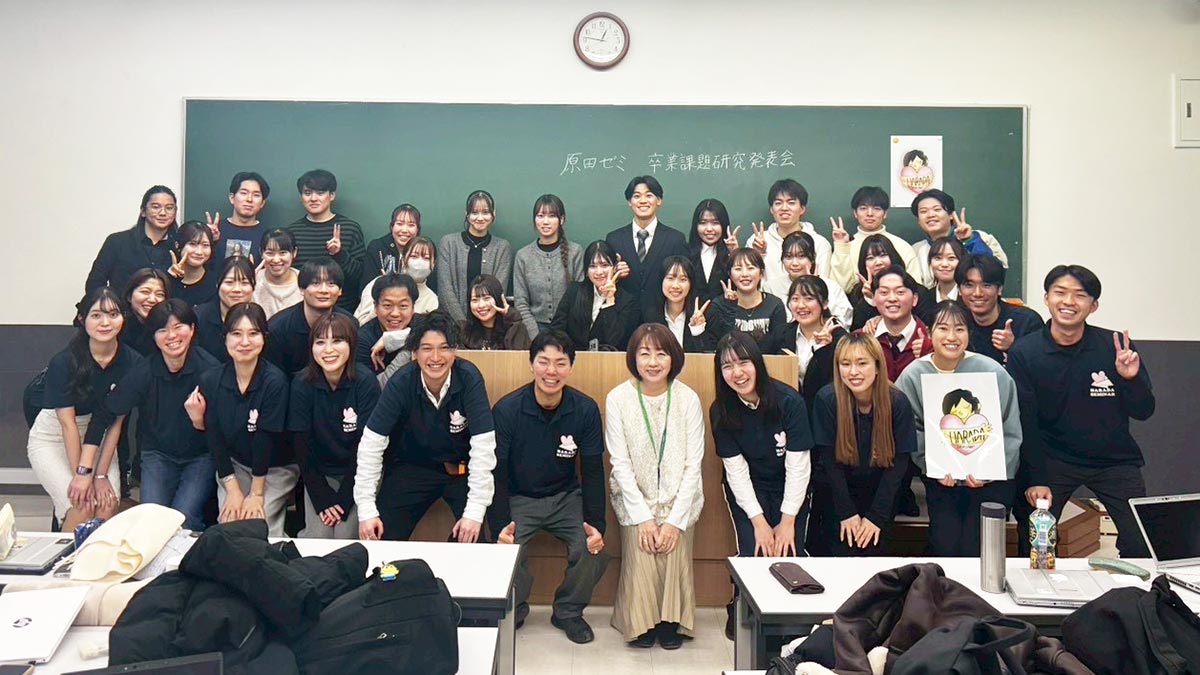 最後に、4年生は今回の卒業課題研究発表会をもって、講義としてのゼミ活動を終えました。これからは社会人として、原田ゼミでの活動や授業を通して得た多くの学びに感謝し、それぞれの人生を全力で生き抜いていきます。