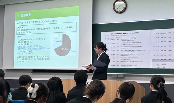3年次より追究してきた研究を1人8分間という短い発表時間に込めることは難しかったと思いますが、わかりやすいプレゼンテーションで研究を紹介しました、詳しくは、ゼミの卒論紀要を読んでいただけたら幸いです。