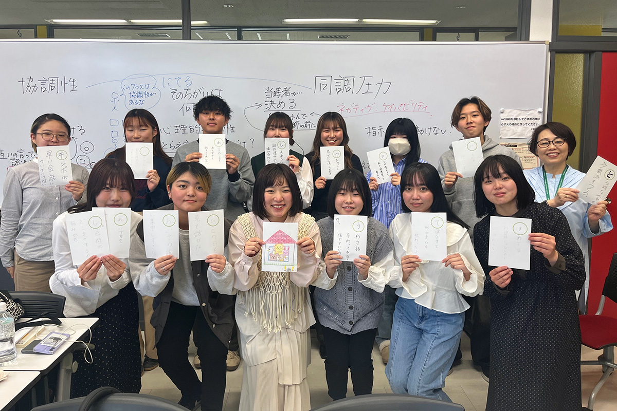 3ゼミでは、ディスコミュニケーションかるたを作り、辛い状況を笑いに変えてみました。互いに「あるある!」と呟きながら、「じゃあ、私は、どんなコミュニケーションを望んでいるのだろう?」と問い直すきっかけになりました。議論のキーワードは「同調圧力」でした。