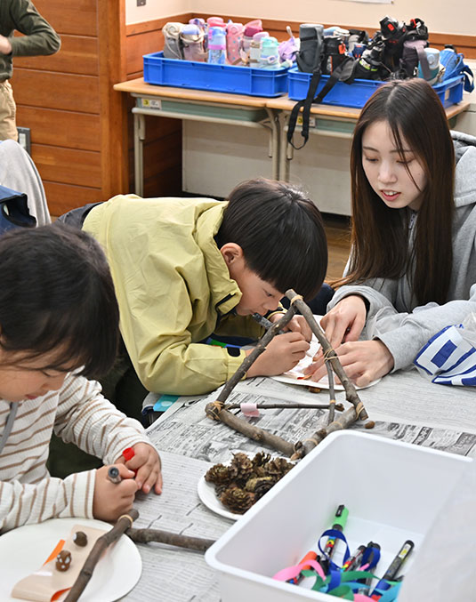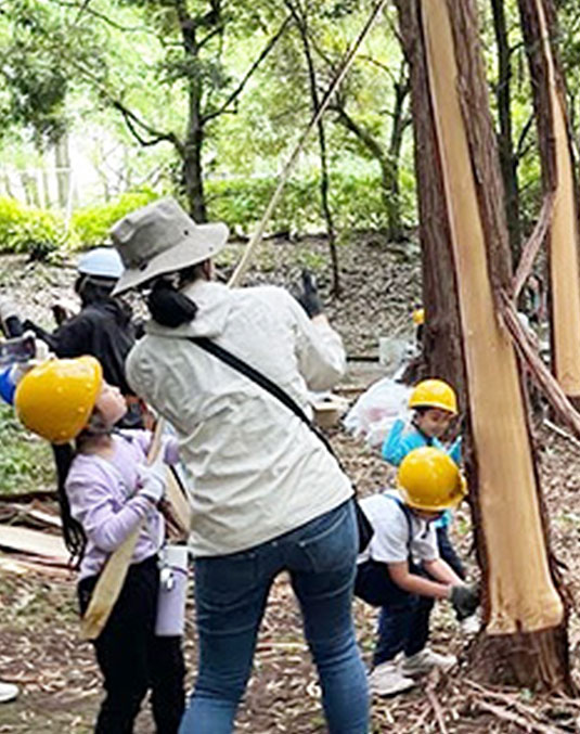 樹木の整備と学園での学びを「木の輪」で