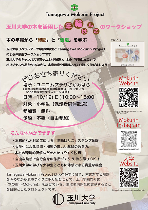 玉川大学リベラルアーツ学部の学生とTamagawa Mokurin Projectによる体験型ワークショップです。