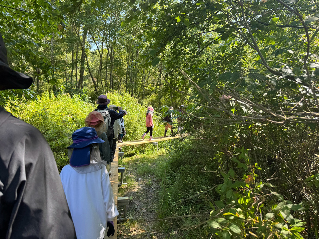 老朽化していた木道の整備が完了し、安全に散策できる環境が整いました。木道を歩くことで、湿原や森の植生や生態系を守りながら、子どもたちや学生が自然観察を楽しむことができます。