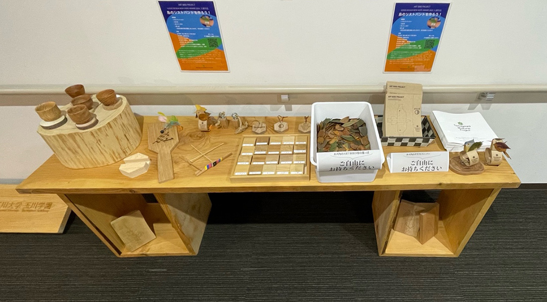 会場では、森の恵みを生かしたプロジェクトの歩みや、学生による学びと実践の様子をパネルや写真で紹介。教育活動を通じて製作した作品も展示しています。伐採や間伐を通じた環境保全活動から、木材を活用したものづくり、さらに地域や企業と連携した取り組みまで、多彩な活動をご覧いただけます。