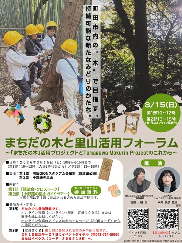 町田市公式ホームページにて、「まちだの木と里山活用フォーラム」の開催情報が公開されています。