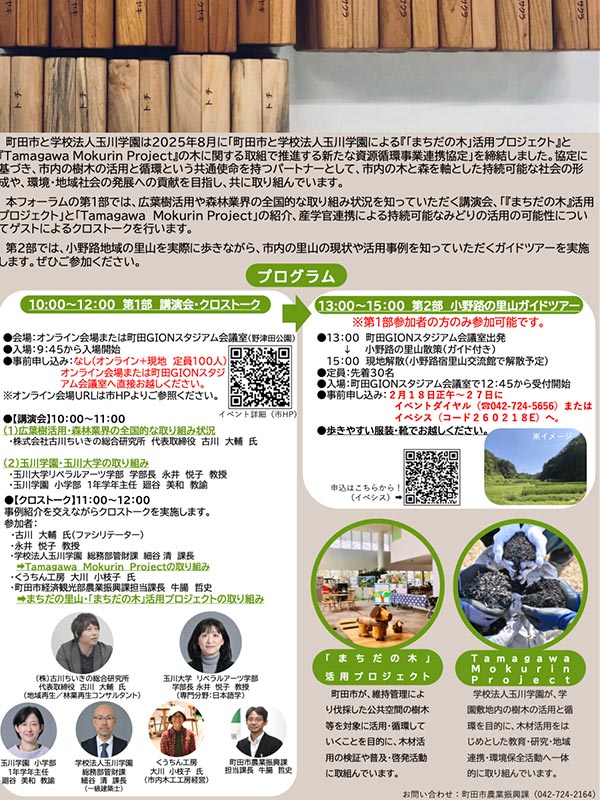 Tamagawa Mokurin Projectとも関わりのある取り組みです。ぜひ詳細は町田市公式サイトをご覧ください。