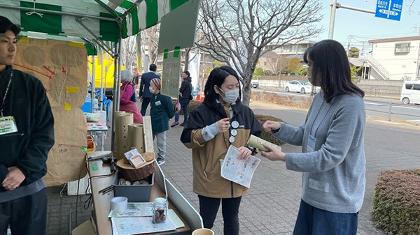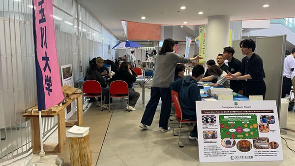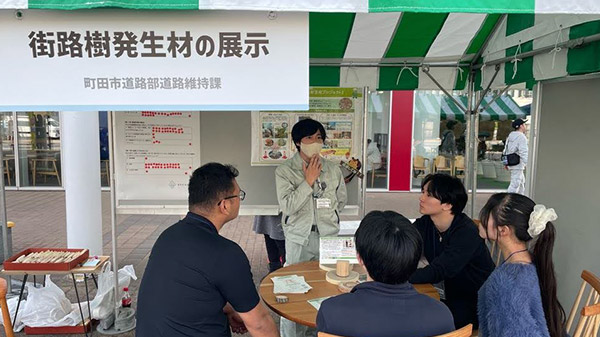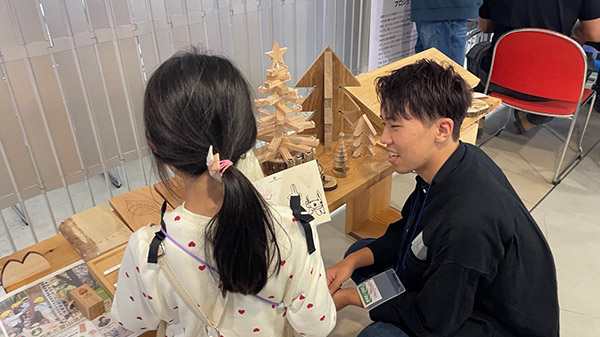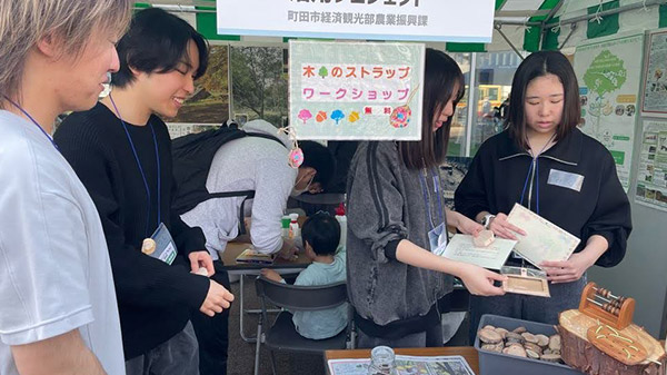 当日は、Tamagawa Mokurin Projectと連携している「まちだの木」活用プロジェクトも出展。学生たちはブースを訪れ、地域材の活用について交流を深めました。