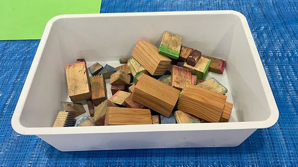参加者は、さまざまな木目のハンコを選び、用紙に思い思いの模様を重ねました。