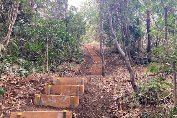 活動は、道を遮っていた笹を刈り取るところから始まり、柵内の整備、階段や柵の修繕へと進み、これらを3年度にわたって行ってきました。野草園を再び学びの場として活用したいという意志に共感し、その思いを引き継ぐことで、ここまで整備を進めることができました。