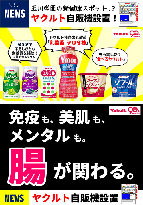 2025年9月、本学園が包括連携協定を締結している神奈川東部ヤクルト販売株式会社との取り組みの一環として、記念体育館2階にヤクルト自動販売機を設置しました。