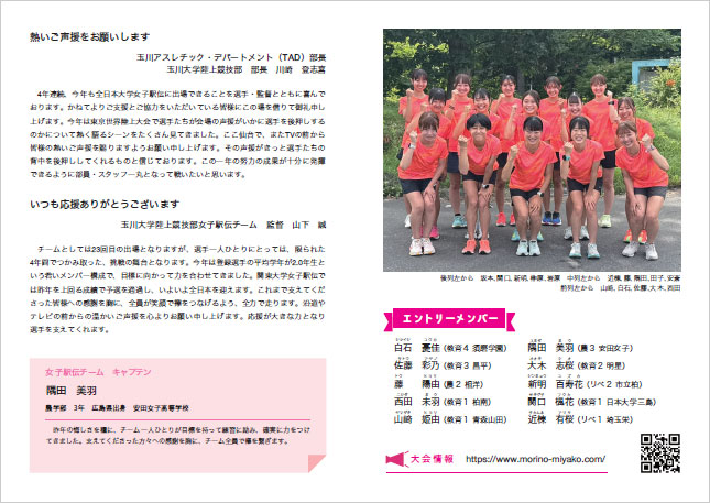 応援してくださる多くの方々への感謝を胸に、玉川の代表として誇りを持って走る女子駅伝チームに、温かいご声援をよろしくお願いいたします!